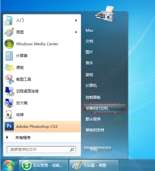 1. 点击【开始】按钮,选择【设备和打印机】,如下图: