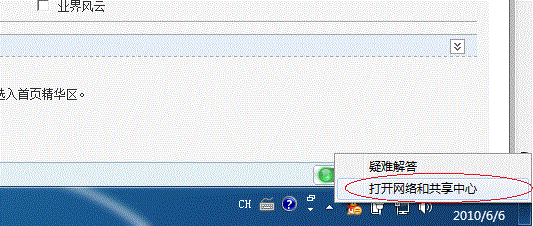 1. 在系统托盘的网络连接图标上右键,选择【打开网络和共享中心】,如下图: