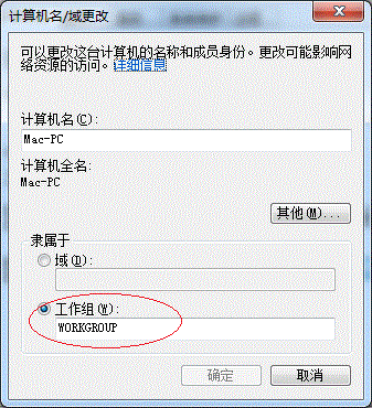 3. 如果处于不同的工作组,可以在此窗口中进行设置: