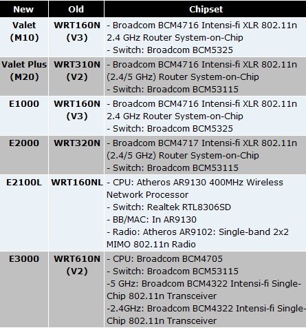 从表中可以看出,无论是Valet系列以及新的Linksys系列,都是原先的Linksys‘换汤不换药’的产品。不过同时可以看到,WRT110,WRT120这类150Mbps的非正宗11n产品已经从他们的产品线里‘抹去’。那么,同是这个旧瓶,怎么装新酒呢?