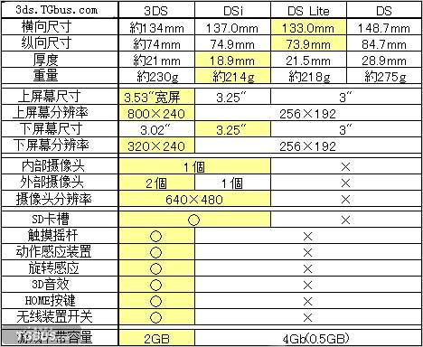 | 內置軟體 | NDSi瀏覽器 | NDSi瀏覽器 | ----- |