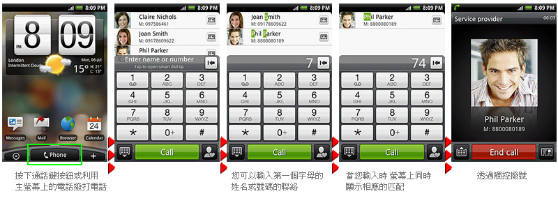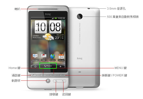 HTC Footprint→按下手機鍵盤是進入導航軟體 (請另外自行選購PAPAGO! X5 版) 。Footprints 書籤建立功能,可以偵測使用者的 GPS 位置,透過相片定位功能 (geo-tagging),不僅讓使用者能輕鬆透過照片記錄目前位置,更可進一步編輯專屬個人的電子明信片或行動日誌。此外,透過 GPS 及 Google Maps 功能,還可立即傳送出去分享。