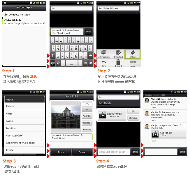 HTC Hero也如HTC Touch Cruise一樣有提供 Footprints 書籤建立功能,可輕鬆建立專屬旅遊日誌,以豐富的多媒體紀錄當時的感動,不但可以用文字和照片甚至可以錄下當時的環境聲音和自己的旁白,讓隨手的感動為生活添加色彩,可以直接定位加上單鍵導航!