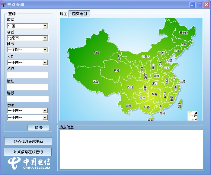 图为:电信2.1客户端热点查询界面 (需要华为EC360电信2.1的客户联系客户)