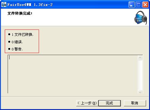 8、按“下一步”,破解完成。提示:1个文件已转换,0个错误,0个警告。