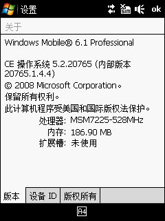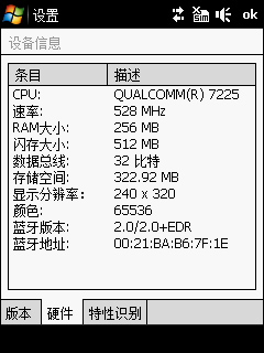 相信硬件配置是大家最为关心的一部分,这关系到系统整体的运行反应以及拓展性能的高低。Touch Cruise 09采用Qualcomm(R)7225的处理器,频率高达528MHz,与Diamond一致,而旧款的Touch Cruise处理器频率为400MHz。应该说这颗CPU搭配QVGA分辨率的屏幕,处理图像非常轻松。