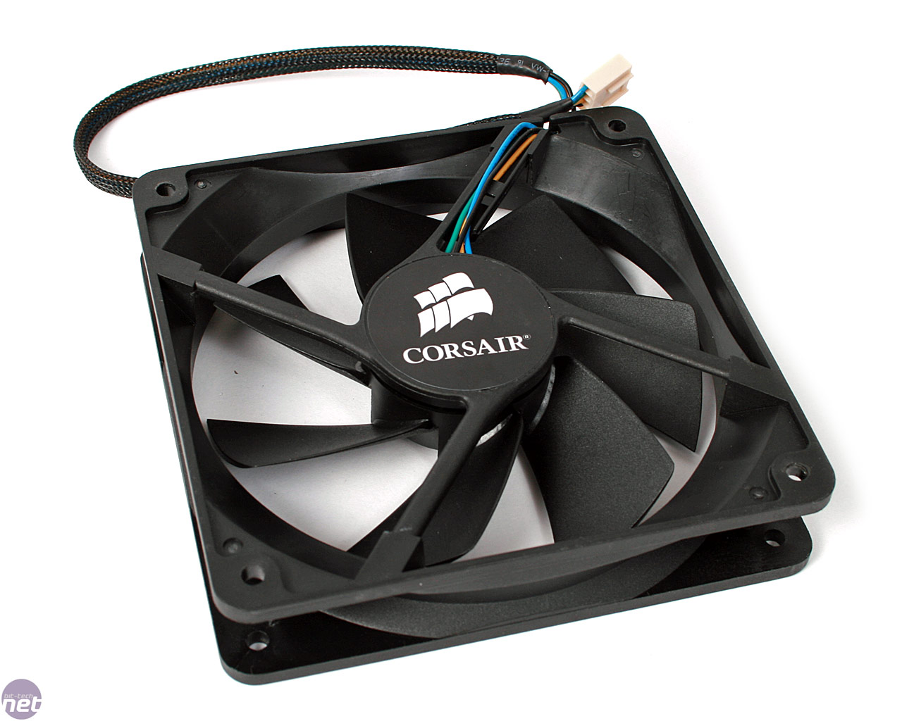 不像其它的水冷系统在散热排上集成风扇,海盗船选择了将风扇和散热排分开的设计——你可以自己加装喜欢的风扇、或者使用双风扇等等,一切随心所欲。海盗船的这个水冷系统自带的120mm×25mm风扇是带PWM转速控制的。