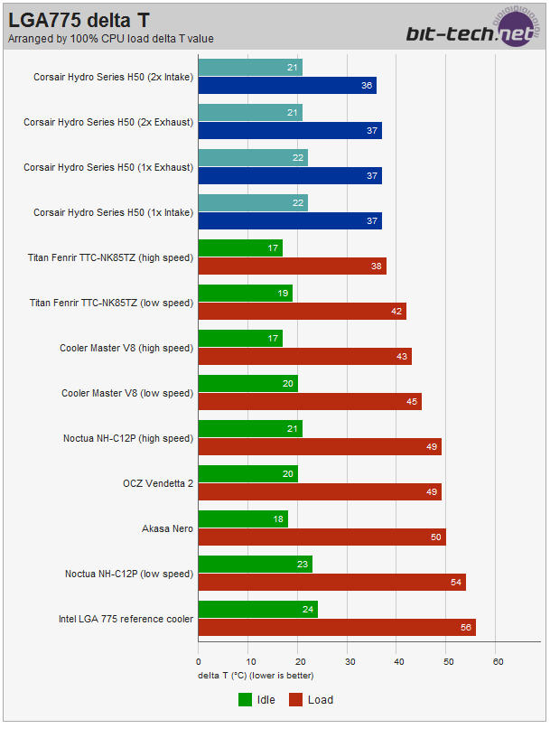 如果这些散热器带有风扇调速功能,我们分别测量最高转速和最低转速下的成绩加入对比。