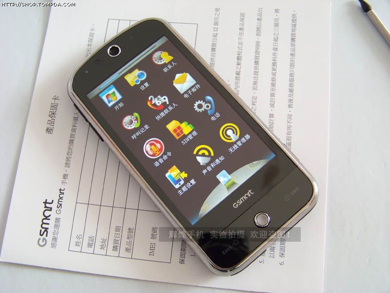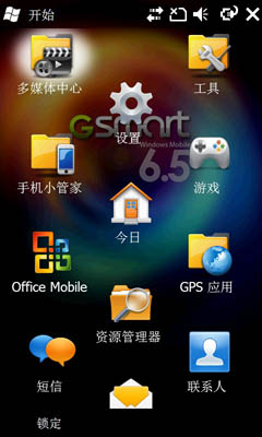 技嘉G-SMART S1200手机采用了技嘉自己研发的“Smart Zone”UI,设计风格和HTC的TouchFLO有很大差别,该UI的操作体验和显示效果还是相当华丽的。